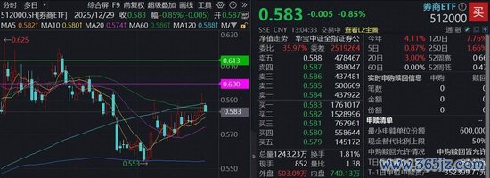 12月29日,沪指冲击9连阳,券商板块在水面下方震荡,400亿顶流券商ETF(512000)场内价格现跌0.85%信通配资,半日成交额超7亿元。个股跌多涨少,财通证券、长城证券、华安证券飘红。