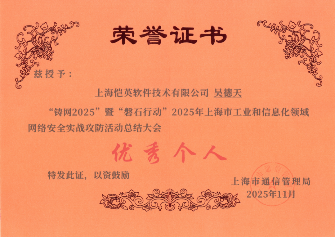 大会通报总结“磐石行动”相关成果并对优秀单位及个人进行颁奖。因在本次活动中的突出表现,恺英网络(002517)子公司上海恺英软件技术有限公司获评“优秀蓝方队伍”和“优秀技战法奖”,公司员工吴德天获评“优秀个人”。